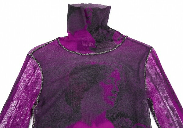 ジャンポールゴルチエ マイユファムJean Paul GAULTIER MAILLE FEMME ニット切替人物プリントパワーネットハイネックカットソー 紫黒M位商品コード:K-74906コンディションランクコンディション詳細透け感がある生地です。