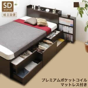 ■4.5倍ポイント■タイプが選べる大容量収納ベッド Select-IN セレクトイン プレミアムポケットコイルマットレス付き チェスト収納 セミダブル[L][00]